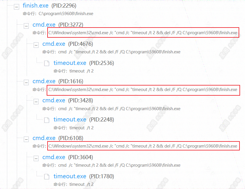 图5 写入计划任务 重复三次执行删除原始文件的命令(